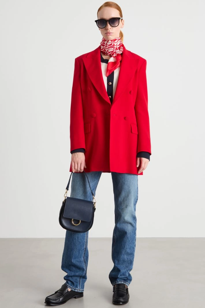 Slim-fit blazer crafted in cady crepe. This lined piece features peaked lapels, long sleeves, side flap pockets and a fabric-covered button fastening.