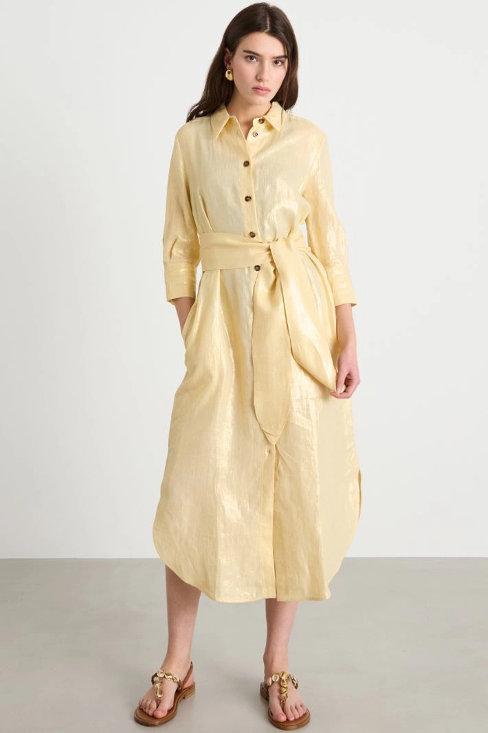 Foiled linen shirt dress